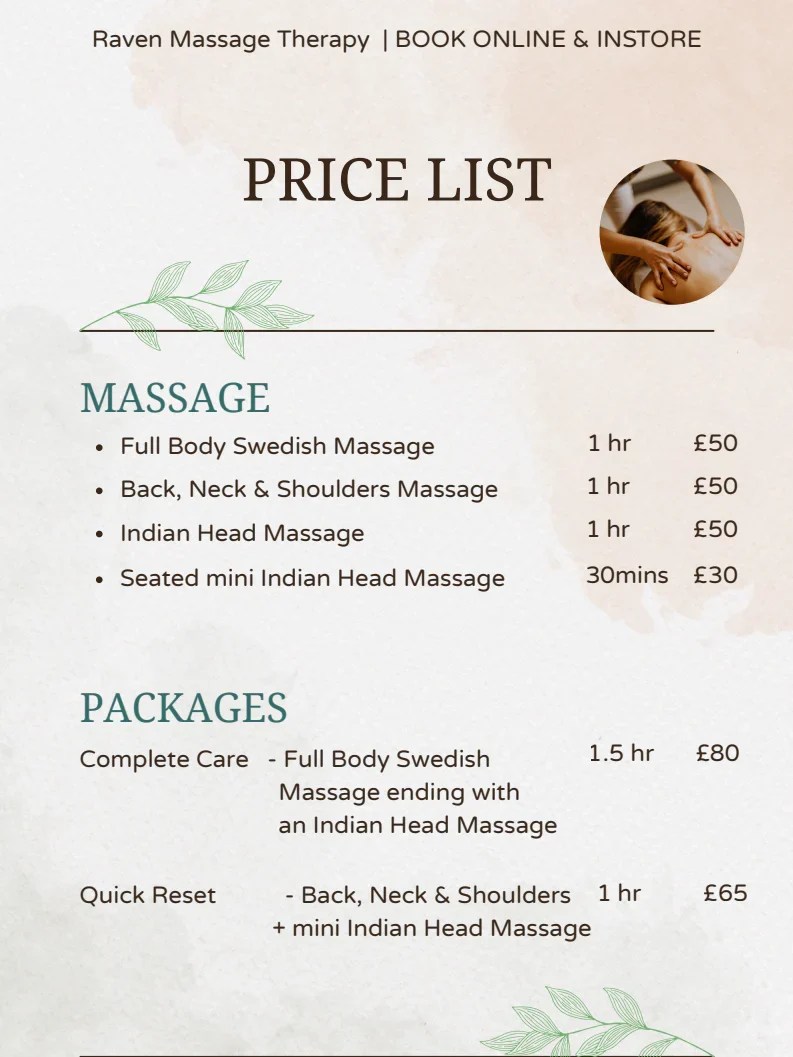 My approach is gentle, grounding, and tailored to you. Each session begins with a short consultation so I can understand what your body needs on the day, allowing me to work with intention to ease muscle tension, calm the nervous system, and help you fully relax.